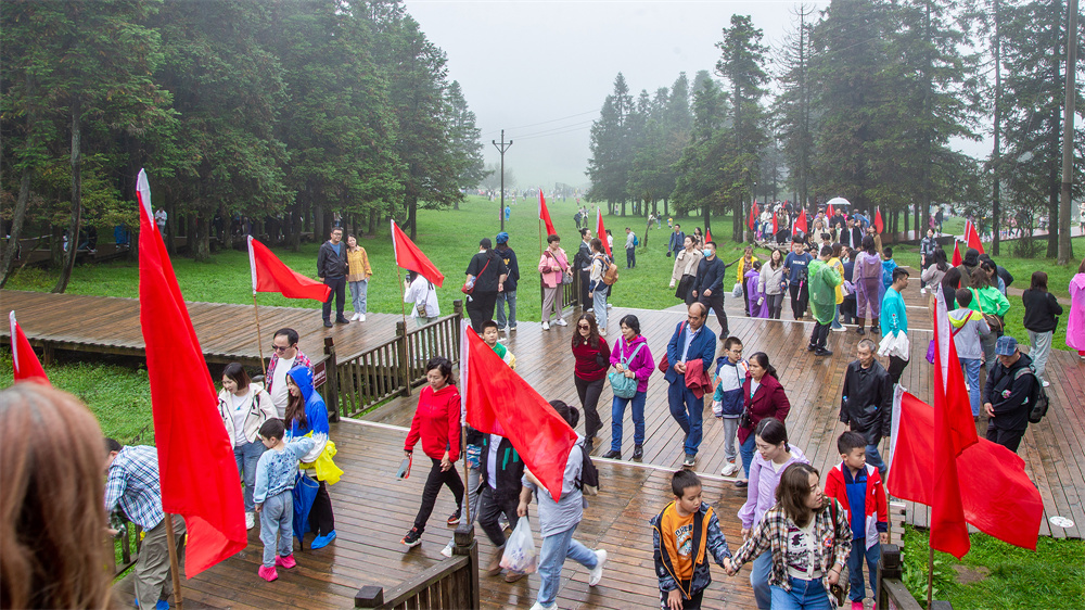 “今天來到武隆,不僅看到了美麗的風景,還收獲了很多驚喜。特別是下雨之后,云霧飄渺的感覺,表演也非常精彩,感覺這一趟不虛此行,非常棒。”游客李先生對景區的活動贊不絕口。另外,仙女山設置多個“我為祖國點贊”打卡點,開展歌唱祖國特色活動,共同為祖國慶生,祈愿美好。