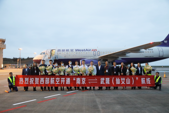 據介紹,南京作為武隆重要客源地之一,航班開通前,來武游客需多次轉乘交通工具才能到達,航班開通后,極大的提高了交通的便捷性和舒適度,空中交通時間縮短為2小時。本次航班中,70余名乘客乘機到達武隆,感受世界自然遺產帶來的獨特魅力。