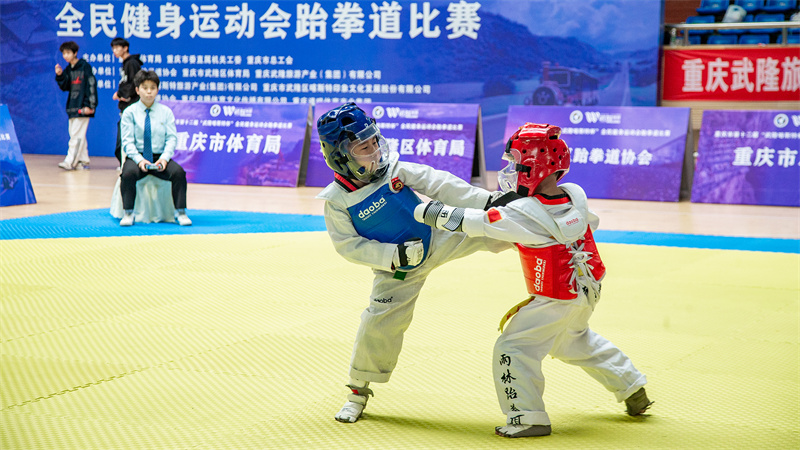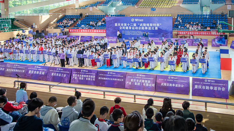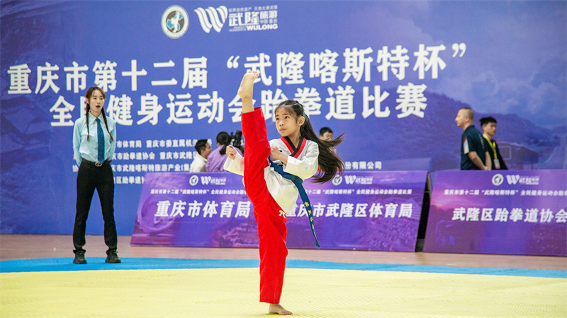 據悉,本次比賽由重慶市體育局、重慶市直機關工委、重慶市總工會聯合主辦,重慶市跆拳道協會、重慶市武隆區體育局、重慶武隆旅游產業(集團)有限公司共同承辦,這也是自疫情結束后在線下舉行的首次全民健身運動會跆拳道比賽。