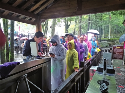 在龍水峽地縫景區,記者看到,車輛按照指示有序停放在停車區。進入景區時,游客們都能做到自覺遵守游覽秩序,依次排隊購票、檢票,沒有出現插隊、擁擠等不文明現象。景區內道路干凈整潔,游客們舉止文明,沒有亂扔垃圾、抽煙、隨意攀爬等不文明行為。