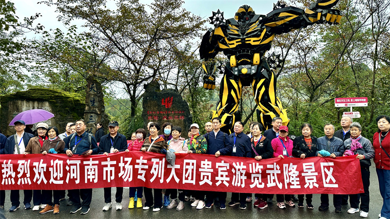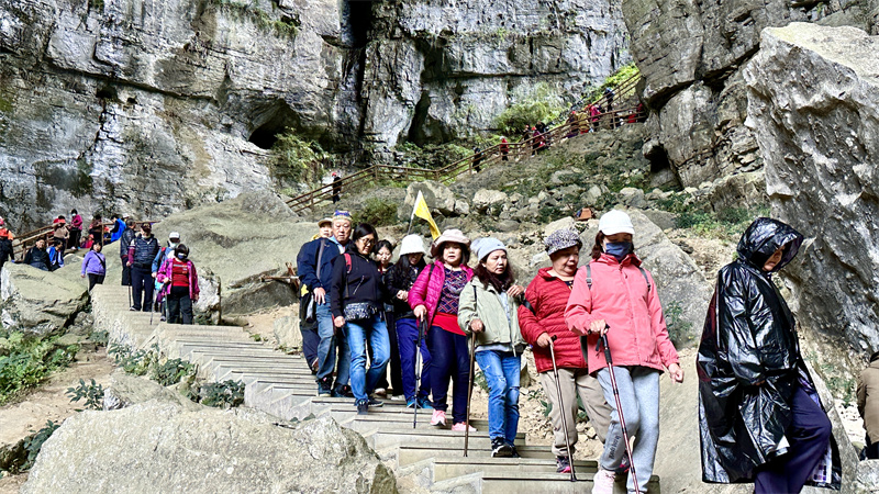 10月27日,被譽為“亞洲最大天生石橋群”的天生三橋景區煙雨蒙蒙、仙氣十足。各種旅游團陸續走進景區,特別是來自河南750人旅游專列尤其備受矚目。由近20輛大巴車組成的車隊,浩浩蕩蕩的駛入景區,神奇壯觀的世界自然遺產風光,完善的配套設施和良好的服務水平,讓游客們陶醉忘返。