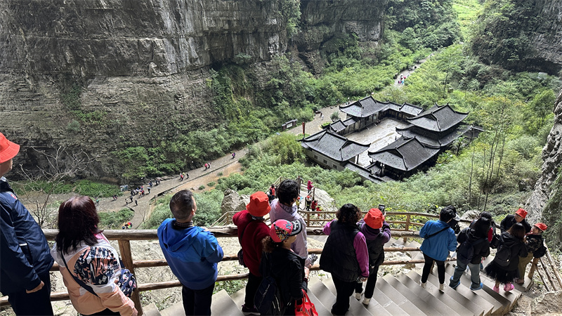 據悉,該旅行團由重慶嗨皮游旅行社負責地接,他們多數人對武隆旅游早有耳聞,卻未領略武隆絕美風光。盡管景區內大團人數眾多,但是整個游覽過程顯得井然有序,在景區工作人員的統籌安排下,河南專列大團有序排隊進入景區。