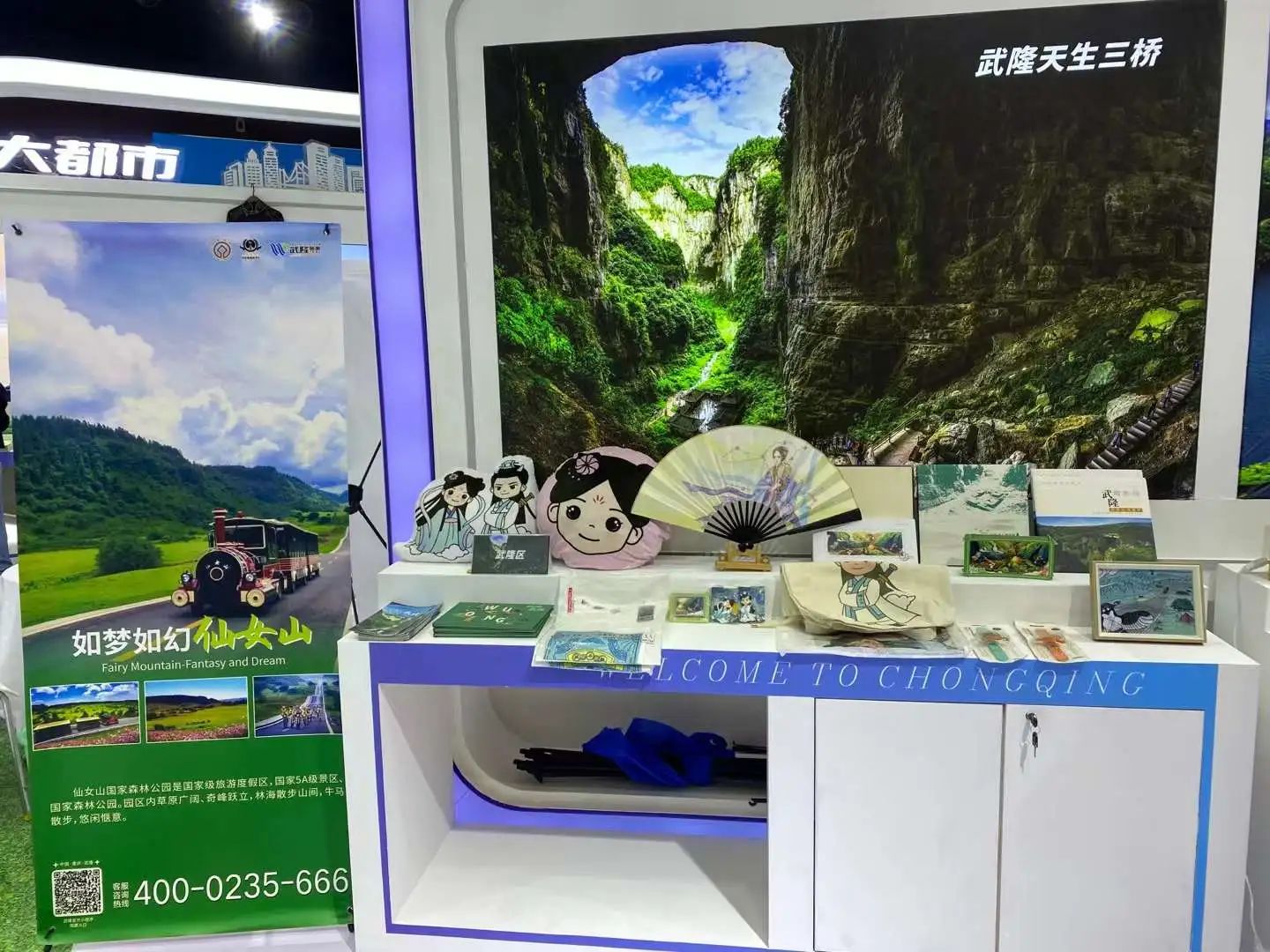 活動現場,武隆手工折扇,手提袋等文創產品精彩亮相,并積極開展旅游線路推介宣傳。