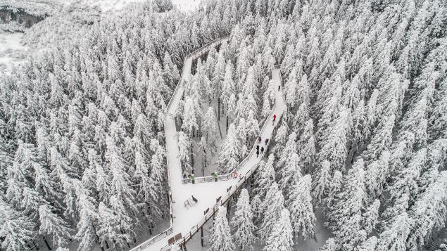 仙女山樹頂漫步的雪,是一個適合做夢的地方。一場雪落,這里纖塵不染,素凈雅致玉樹瓊花,美如仙境讓人嘆為觀止,美得不動聲色卻足以俘獲人心。