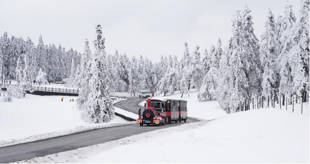 往年冬天屢上熱搜的仙女山“雪國列車”同樣吸睛,一輛大紅的小火車穿行在冰雪世界,遠遠望去宛如童話世界的唯美風景,深刻詮釋了什么叫“人間仙境”。