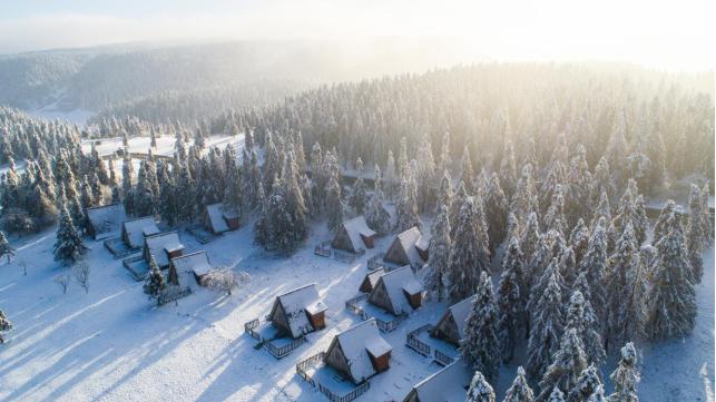作為仙女山必打卡的大草原景點,除了雪掛滿大樹宛若演繹一首冬日戀歌,棧道兩旁的大樹就像一棵一棵的圣誕樹,一座一座的三角形房子像極了城堡,冰雪世界美的像加了濾鏡,網友贊嘆:恍若來到了北海道。