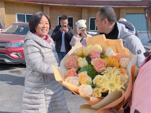 為游客送上鮮花祝賀