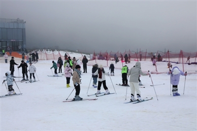 這幾天,仙女山冰雪季持續升溫。在仙女山室外滑雪場,尖叫聲、歡呼聲此起彼伏,前來玩雪滑雪的游客絡繹不絕,小朋友們坐在五彩繽紛的滑雪車上,沿著雪坡順勢而下;滑雪愛好者則在教練的帶領下練習雪板滑雪的基本動作,大家在白雪皚皚的童話世界里體驗不一樣的節日歡樂。
