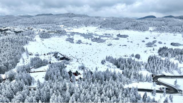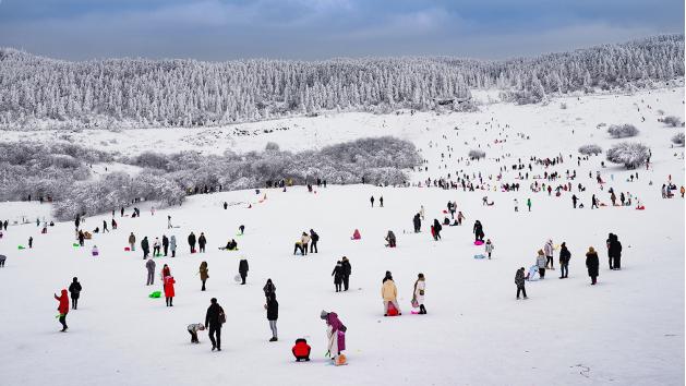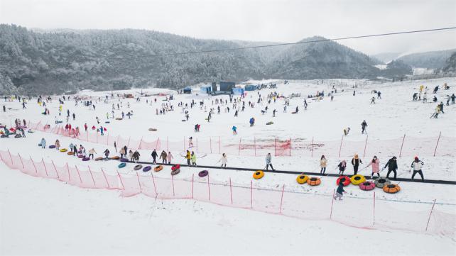 雪勢大、雪質好、積雪厚,仙女山成為重慶周邊冬季出游首選之地。超過10cm的積雪加上霧凇、冰瀑、雪原等自然景觀,著實讓仙女山人氣飆升,也讓游客在新年伊始就感受到了一股熱火朝天的紅火勁兒。