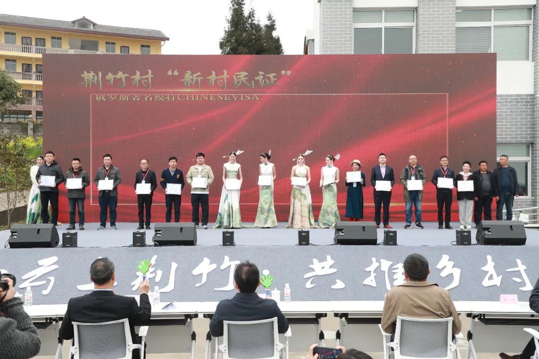 鄉村要振興,人才是關鍵。在本次“四民”工程建設大會上,荊竹村還為部分“新村民、榮譽村民”頒授了證書,廣泛吸納荊竹村內、村外、全國乃至境外的各類人才,參與荊竹村鄉村振興建設。