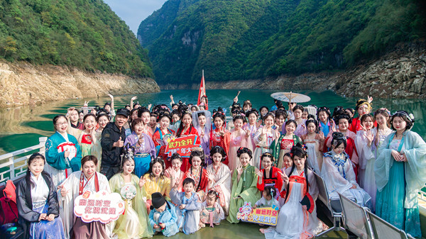 趣味活動,樂享不停。芙蓉仙女多才多藝,隨著古典音樂翩翩起舞,優美的舞姿、飄逸的衣裙,宛若水上精靈;伴著悠揚的古箏,仙女們款款走來,形式各樣、色彩豐富的衣裙隨風飄舞,漢服T臺秀韻味十足;踢毽、投壺、套圈……歡樂無窮,引得圍觀游客紛紛參與;坐在甲板上,迎著春風,在青山綠水間品茗賞景,怡然自得;站立船頭拍照打卡,留下與“人間仙境”的珍貴合影。