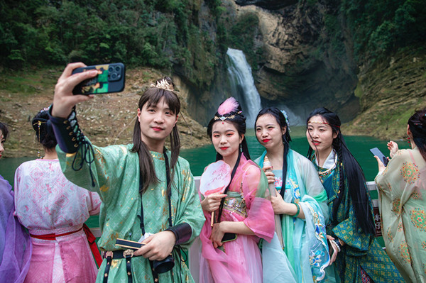 芙蓉江畔芙蓉開,芙蓉仙女入畫來。4月13日,“芙蓉仙女·趣看武隆”漢服春游季在芙蓉江開啟,百余名漢服愛好者身穿古韻漢服,徜徉在青山綠水間,美輪美奐的漢服驚艷吸睛,仙女的一顰一笑皆是風景,芙蓉仙女的傳說照進了現實。