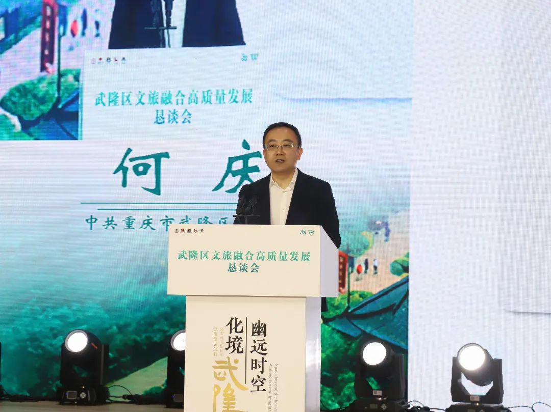 何慶在主旨發(fā)言中向出席懇談會的各位嘉賓表示熱烈歡迎。他說,武隆旅游30年的光輝歷程,是一部可歌可泣的創(chuàng)業(yè)史、是一部奮斗奮進的發(fā)展史、更是一部追夢逐夢的光榮史。30年來,我們在繼承中創(chuàng)新、在創(chuàng)新中發(fā)展,走出了一條具有武隆特色、切合武隆實際的綠色發(fā)展之路。歷屆黨委政府、廣大黨員干部和武隆兒女積極投身旅游發(fā)展,敢想敢干、實干快干,走出了一條“綠水青山”就是“金山銀山”的現(xiàn)實轉(zhuǎn)化路徑,實現(xiàn)了“農(nóng)業(yè)小縣”到“旅游大區(qū)”的華麗蛻變,“無名之地”向“度假勝地”精彩蝶變;成功開發(fā)仙女山、天生三橋、芙蓉洞等A級景區(qū)5個,收獲世界自然遺產(chǎn)、世界最佳旅游鄉(xiāng)村、國家級旅游度假區(qū)、國家全域旅游示范區(qū)、國家5A級旅游景區(qū)、國家生態(tài)文明建設(shè)示范區(qū)、綠水青山就是金山銀山實踐創(chuàng)新基地、國家食品安全示范城市等品牌榮譽,被聯(lián)合國授予“可持續(xù)發(fā)展城市范例獎”;全力構(gòu)建“公鐵水空”立體交通網(wǎng)絡,渝湘高鐵、白馬航電樞紐、武兩高速等加快推進,仙女山機場建成通航,群眾出行更加便捷通暢,探索形成景區(qū)帶動、廊道帶動等富民增收模式,全區(qū)10萬余群眾吃上“旅游飯”。