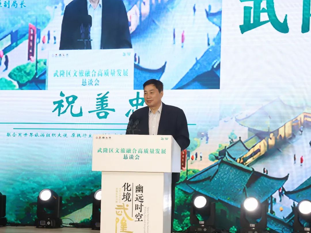 祝善忠在發(fā)言中表示,30年來,武隆依托當?shù)刎S富的旅游資源大力發(fā)展旅游產(chǎn)業(yè),成為重慶市旅游業(yè)的“排頭兵”和全國重要旅游目的地。希望武隆旅游業(yè)今后的發(fā)展,要因地制宜運用新質(zhì)生產(chǎn)力,突破傳統(tǒng)文旅產(chǎn)業(yè)的發(fā)展模式,提升文旅產(chǎn)品和服務的質(zhì)量與效率,推動文旅經(jīng)濟的高質(zhì)量發(fā)展;要充分挖掘、利用傳統(tǒng)表演藝術(shù)類非物質(zhì)文化遺產(chǎn),注重原真形態(tài)的展示和編排和價值轉(zhuǎn)化;要以旅游產(chǎn)品為核心,以旅游景區(qū)為“點”,以旅游線路為連接“軸”,將各“點”有機組合,形成“點一軸一集群”的旅游產(chǎn)品體系。要塑造具有武隆特色的旅游國際化形象品牌,凝練出高度概括、定位清晰的旅游吉祥物IP形象、旅游口號、旅游符號,形成武隆旅游國際化發(fā)展的外部吸引。要圍繞武隆旅游業(yè)發(fā)展目標,形成旅游領(lǐng)域的專業(yè)人才、旅游經(jīng)營管理人才、旅游業(yè)創(chuàng)新創(chuàng)業(yè)人才等人才體系。