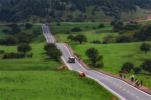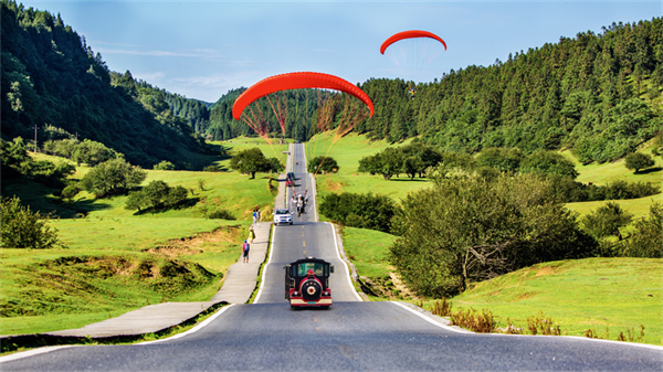 仰望藍天如洗,俯瞰綠草如毯,乘坐歐式風情小火車穿梭于最美波浪公路,仿佛置身于一個人間仙境,每一寸土地都散發著清涼與寧靜。