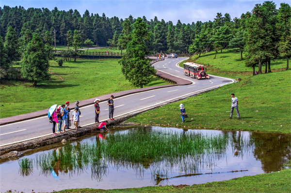 如果說武隆是大自然的空調房,那么5A級景區仙女山國家森林公園無疑是這房中最為清新宜人的存在。它擁有33萬畝原始森林、10萬畝天然草原,被稱為具有西歐古典風情的“南國第一牧場”。夏季的仙女山,平均氣溫穩定在21℃,儼然是最自然的空調,早晚溫差可達8—10度,晚上不蓋被子睡覺還可能會感冒。