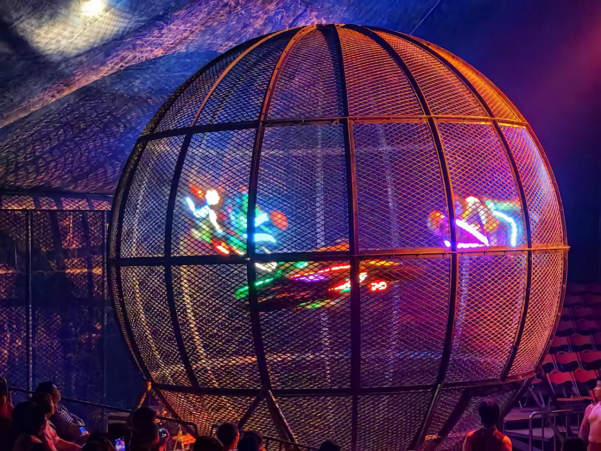 “驚險刺激,開啟仲夏視聽盛宴”。這是一場集雜技、魔術、滑稽于一體的嘉年華狂歡派對,在75分鐘的演出里,觀眾不僅能欣賞到剛柔并濟,勁健婉轉的高空綢吊雜技節目《蜀·曦》、婀娜舞姿與高難度技藝結合的單手頂節目《嘉陵江隨想曲》、國韻哲理相融共創、激發文化共鳴的雜技新“花活”《壇技》更有急速飛旋,令人腎上腺素飆升尖叫連連的大型《驚險環球飛車》《急速飛輪》等近10個精彩刺激,或古典或摩登,亦民俗也俠情的饕餮雜技節目,還能一睹重慶雜技藝術團頂尖的舞美實力,感受千萬級舞美、燈光、音響帶來的視聽震撼,結合全新織繡的絢麗演出服裝,全場魔幻鉅制,是“馬戲”也不止“馬戲”。
