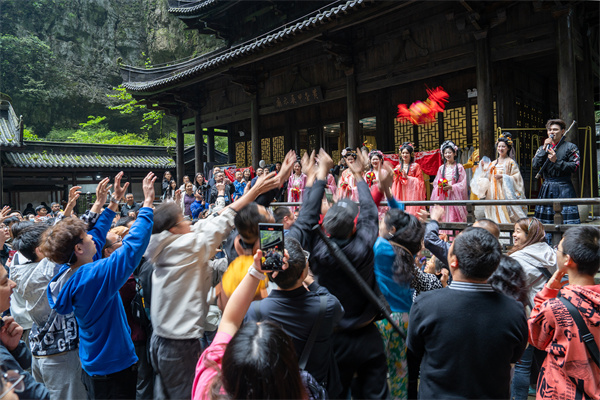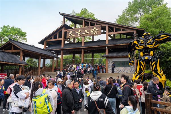 一大早,被譽為“亞洲最大天生石橋群”的天生三橋景區人頭攢動,到處都是人山人海,一片熱鬧非凡景象。今年以來,天生三橋景區創新地推出“仙俠國風趣武隆”、仙女游園、捕快巡游、拋繡球結緣、變裝打卡武俠世界、古趣投壺、射五毒等文旅趣味活動,吸引了眾多游客體驗打卡,景區人氣高漲。