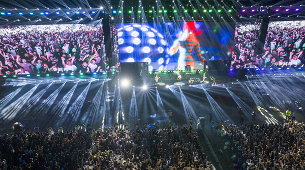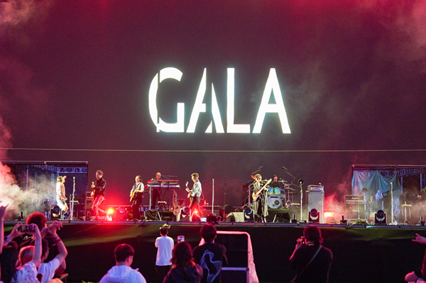 晚上8點10分,GALA樂隊閃亮登場,全場立即沸騰起來。動感的旋律,飽含感情的聲音,故事感滿滿的歌詞,GALA樂隊帶來了《水手公園》《Young For You》等多首曲目,每一首歌曲都令現(xiàn)場歌迷聽得如癡如醉,正能量滿滿。