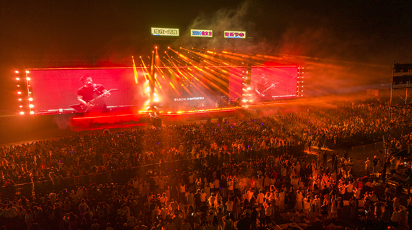 晚上9點10分,已經(jīng)出道了37年的黑豹樂隊,一出場就將音樂節(jié)氛圍推向另一個高潮,新歌《The Shining》《無地自容》等歌曲,深情的歌聲、低沉的嗓音、激昂的演奏,充滿了激情。人潮人海中,是你是我,歡呼狂歡,無法自拔,每一首歌曲都讓歌迷們感受到了搖滾音樂的魅力和力量,他們的表演仿佛在告訴大家,搖滾精神永不熄滅。