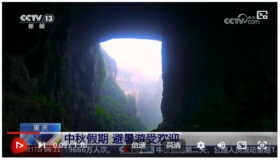 此外,中秋期間,武隆景區不僅游客如織,更是憑借其超高人氣,一天內兩次“闖入”央視屏幕,分別被央視CCTV-3新聞、央視CCTV-2財經聚焦報道。在央視的鏡頭下,武隆獨特的自然風光和濃厚的節日氛圍,讓更多人領略到了武隆的魅力。