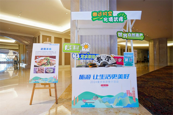 9月26日,由重慶市文化和旅游發展委員會主辦,重慶旅游集團會展公司承辦,“渝味360碗”——2024重慶旅游推介活動在青海西寧拉開帷幕。作為重慶旅游的璀璨明珠,武隆景區以其險峻壯麗的喀斯特地貌、秀麗旖旎的山水風光、獨具特色的美食佳肴以及底蘊深厚的文化內涵,吸引了來自西寧及周邊地區的眾多游客與業界人士的目光。