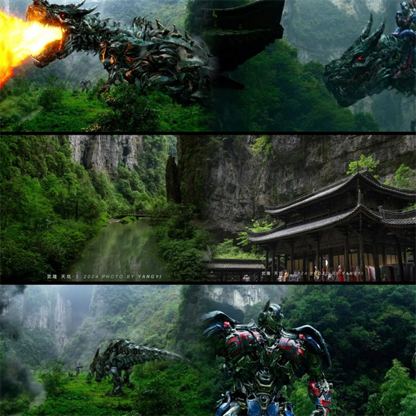 可能很多朋友還未親自去過天生三橋,但相信都早已看過這個景區(qū)了,在兩部很有名的電影里。一部是2006年張藝謀的《滿城盡帶黃金甲》、另一部則是2014年邁克爾.貝的《變形金剛4》。它們都曾在此取景,除此之外,還有劉亦菲的《三生三世十里桃花》、吳樾的《王牌替身》、張丹峰的《勇者無懼》等國內(nèi)外知名影視作品陸續(xù)在此取景?!段覀兪邭q》、《極限挑戰(zhàn)》等熱門綜藝節(jié)目,都能在其中看到天生三橋絕美的風(fēng)景。今年6月24日,武隆天生三橋影視基地更是成功入選為“重慶市影視基地”,成為全球?qū)а莺陀耙晞?chuàng)作者夢寐以求的拍攝勝地。