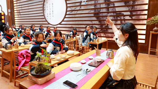 當天,100余名來自武隆區實驗小學的學生在營地體驗了實踐教育課程,包括“小小機械工程師”“扎染”“茶藝”等營地經典實踐教育課程。來自武隆區42所學校的校長也來到營地,與學生們一同沉浸式體驗營地生動、多樣、趣味性十足的課程,切身感受到實踐教育課堂對孩子成長、生活和發展的重要意義,并對于素質教育的形式產生更深層次的思考。