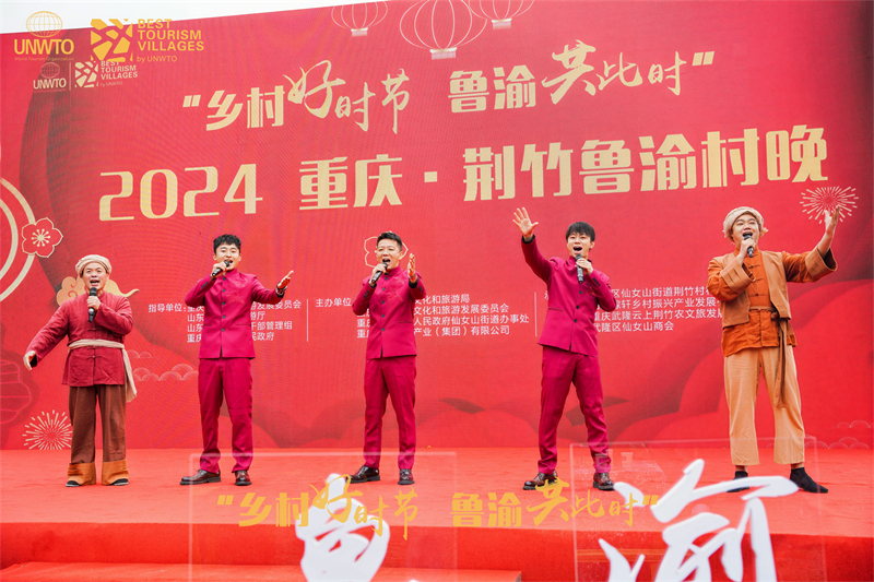 文旅互鑒,合作共贏。11月11日至12日,“鄉(xiāng)村好時(shí)節(jié) 魯渝共此時(shí)”2024重慶·荊竹魯渝村晚,在重慶武隆荊竹村歸原小鎮(zhèn)隆重舉行,來(lái)自山東省十六地市文化和旅游局相關(guān)領(lǐng)導(dǎo)、旅行社代表、鄉(xiāng)村旅游負(fù)責(zé)人、重點(diǎn)旅游景區(qū)度假區(qū)代表團(tuán)、榮譽(yù)村民代表等210余人出席活動(dòng),推動(dòng)魯渝協(xié)作走深走實(shí)。