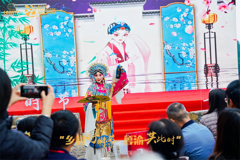 11月12日上午11時(shí),2024重慶·荊竹魯渝村晚在印象武隆演出團(tuán)隊(duì)表演的《川江號(hào)子·歲月長(zhǎng)歌》中拉開序幕,緊接著,來(lái)自山東濟(jì)南戲曲曲藝中心帶來(lái)京劇經(jīng)典選段《貴妃醉酒》,讓荊竹村的村民感受國(guó)粹之美、傳統(tǒng)之韻;代表中國(guó)魔術(shù)登上“世界魔術(shù)大賽”舞臺(tái)的濟(jì)南市雜技團(tuán)魔術(shù)演員張超,帶來(lái)了精彩神奇的魔術(shù)表演讓村民大開眼界;唯美的《書簡(jiǎn)》舞蹈感受到“孔子”的魅力。