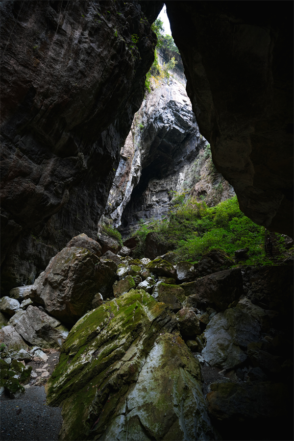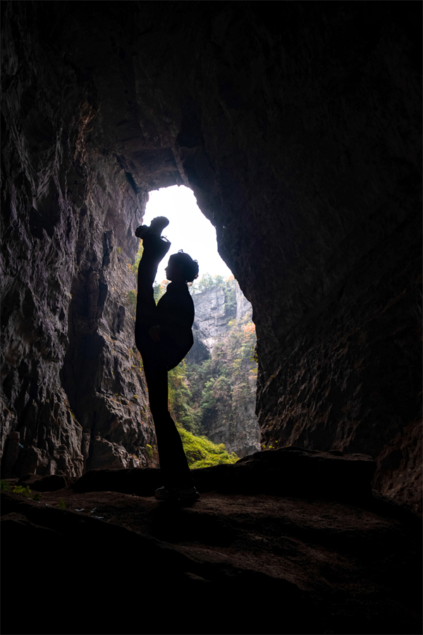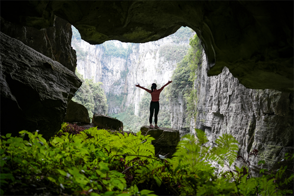 天生“四橋”的入口幽深隱秘,只有武隆土著才能找到。經過森林茂密、落葉覆蓋的石板小徑,植被環繞的天生“四橋”露出了神秘的面容,經過億萬年沖蝕形成的天然橋洞,幽深靜謐,溶洞四伏的兩壁仿佛訴說著億萬年變遷的故事。