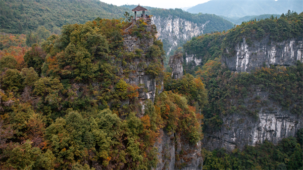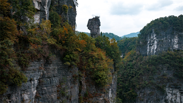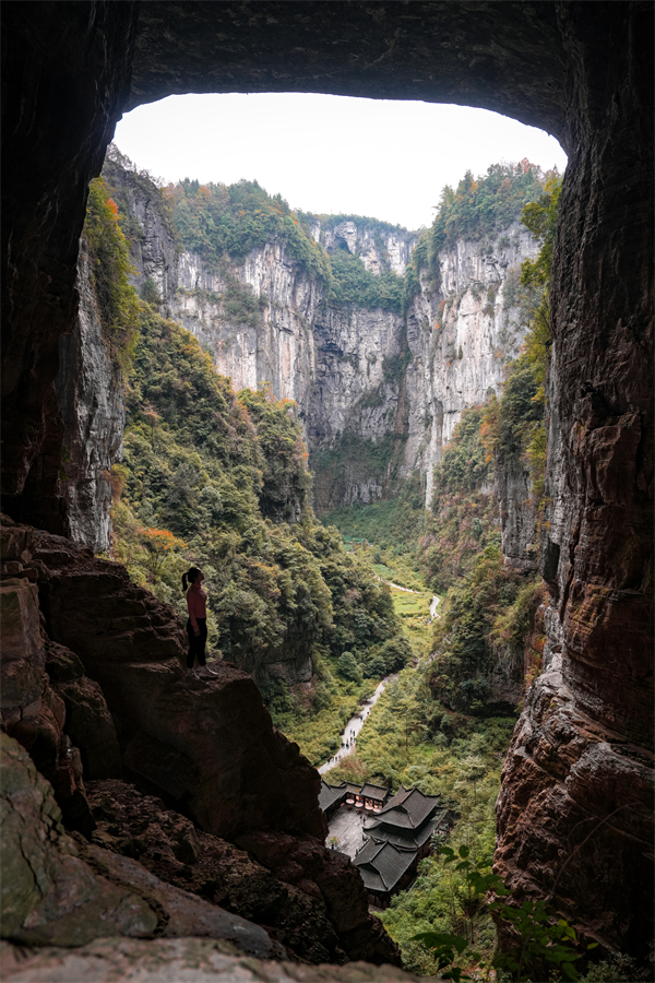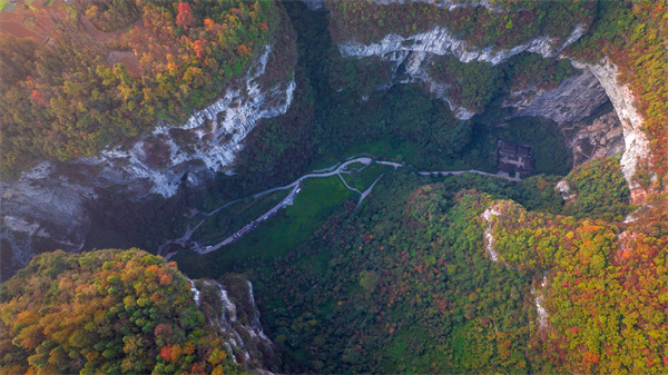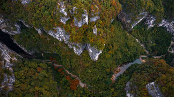 雖已進入冬季,但天生三橋依舊泛著濃濃的秋意,仿佛大地打翻了調色盤,紅綠黃各色植被籠罩著整個天生三橋,為懸崖絕壁增添了幾分詩意。雄偉壯觀的天龍橋、古樸典雅的天福官驛、高大形象的青龍橋、幽深暗黑的黑龍橋,在秋意的點綴下,散發著獨有的魅力,只有身臨其境,才能感受到這風格迥異的絕美秋色。