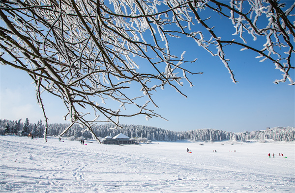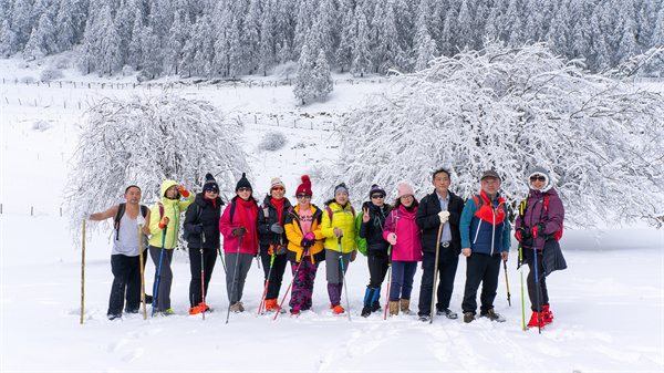 仙女山雪地徒步挑戰賽線路貫穿仙女山景區,全程約6公里。徒步中,可以跟隨小火車的“步伐”,走過連綿天際的最美公路、穿越銀裝素裹的茂密森林、漫步白雪皚皚的大草原,仙女山冬日的每一幀絕美畫卷都在徒步中盡收眼底。
