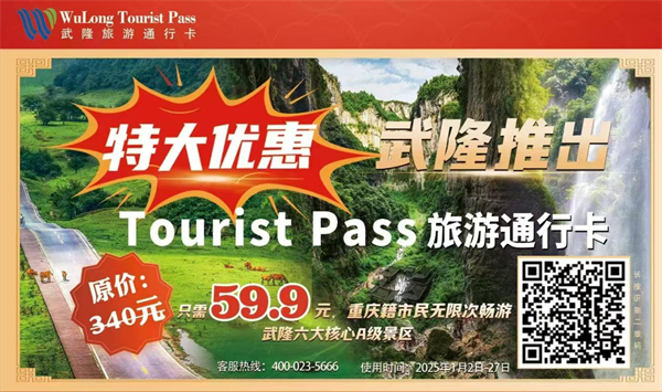 跟著剛開通的渝湘高速復線,途經巴南、南川、武隆3個站點,在武隆西下高速,1.5小時“快車道”剎攏,帶著武隆景區送給重慶人的“新年禮物”-59.9的武隆旅游通行卡無限次暢游仙女山、白馬山、天生三橋、龍水峽地縫、芙蓉洞、芙蓉江六大景區,今日上山賞雪,明日探秘武隆喀斯特。