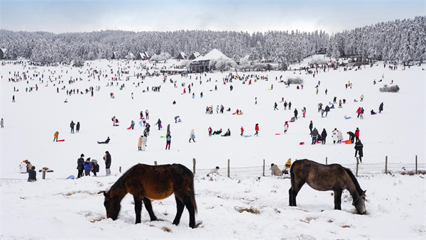 “東方瑞士”仙女山,高山草原、林海雪原,獨樹一幟。根據天氣預報顯示,春節期間可能會下雪,草原、森林被厚厚的積雪所覆蓋,呈現出千里冰封、萬里雪飄的唯美冰雪盛宴奇觀。景區24小時可入園,春節期間娛樂項目營業時間:8:30-16:30(1月28日、29日,2月4日);8:00-17:00(1月30日—2月3日)。