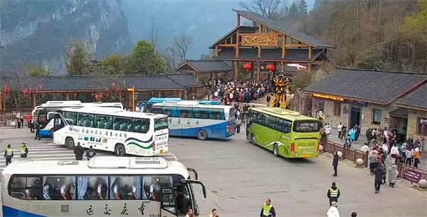 正月初二,出游正當時。上午,仙女山國家級旅游度假區游客接待中心停車場車輛整齊排列,仿佛一條條流動的彩帶,為新年的景區增添了一抹亮麗的色彩。仙女山、天生三橋、龍水峽地縫景區入口大量游客有序排隊檢票入園,景區內游人如織,秩序井然,更有豐富多彩的活動,帶領游客解鎖世界自然遺產地的新春年味,熱鬧非凡。