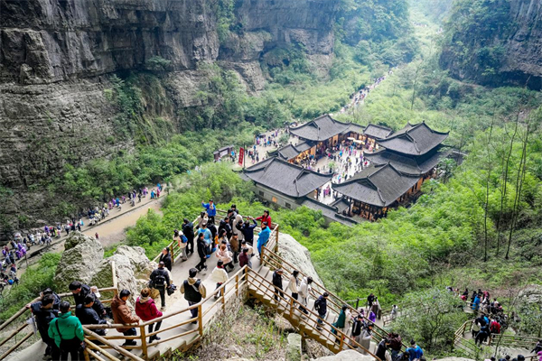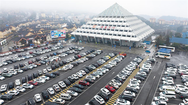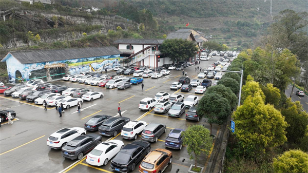 武隆資源稟賦,被譽(yù)為“世界喀斯特生態(tài)博物館”。趁著春節(jié)假期,許多游客慕名而來,想親自領(lǐng)略喀斯特地貌的風(fēng)采,解鎖世界自然遺產(chǎn)地的新春年味。這不,景區(qū)剛營業(yè)沒多久,游客接待中心停車場就停滿車輛,一排排整齊的車輛,甚為壯觀,成為一道亮麗的風(fēng)景線。各景區(qū)更是人氣滿滿,熱鬧非凡,游客們或是在非遺表演現(xiàn)場目不轉(zhuǎn)睛地觀看,或是與藝人熱情互動,親身體驗(yàn)非遺技藝的魅力;或是漫步在景區(qū)的小徑上,欣賞著沿途的美景,感受著新春的氣息。