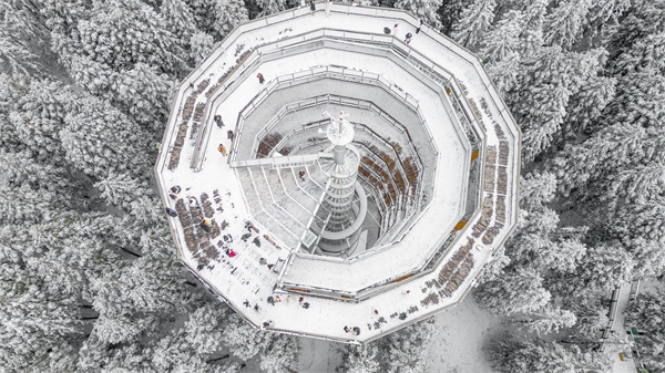 仙女山景區內的樹頂漫步同樣不可錯過。漫步森林棧道、登上森林之眼,眼中盡是遼闊的雪原。最后感受96m的云端旋降,為自己的旅途留下一個完美的句號。