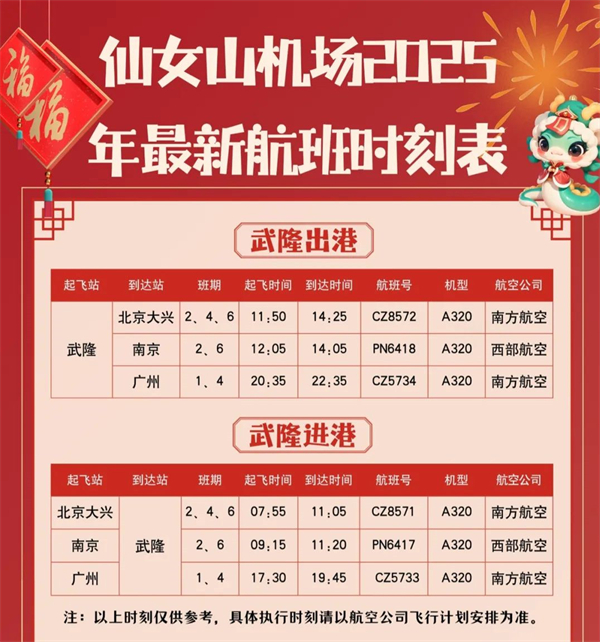 據悉,南京直飛武隆是由武隆區政府、交通局、仙女山機場、旅產集團聯合西部航空,于2023年10月開通的直飛航線。該航線由西部航空公司執飛,每周二、周六都有航班往返,9:15從南京起飛,11:20到達武隆;返程時間為12:05從仙女山起飛,14:05到達南京,飛行時間約為2小時。該航班不僅提升了南京游客的出行效率,同時還豐富了南京游客的出游線路。