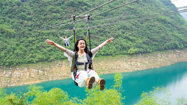 購買202.5元的兩人、298元的三人套餐,即可乘坐環(huán)保觀光車,電梯直達“地球最美裂痕”龍水峽地縫,穿梭億年地質(zhì)裂痕,感受“地球心跳”的震撼;乘坐索道直達芙蓉洞,探秘“地下藝術宮殿”,鐘乳石奇觀觸手可及;乘纜車俯瞰芙蓉江碧水丹山,游船漫賞峽谷水墨畫卷。