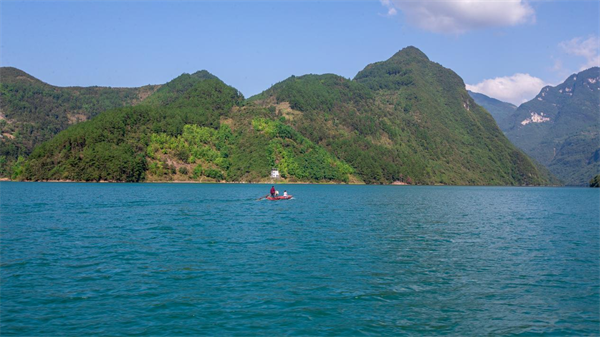 移步至芙蓉江,碧綠江水蜿蜒于奇峰峻嶺間,江水碧綠、青山聳立、飛泉流瀑,江面上游船緩緩前行,蕩起層層漣漪 ,船行碧波上,人在畫中游。