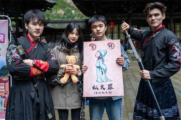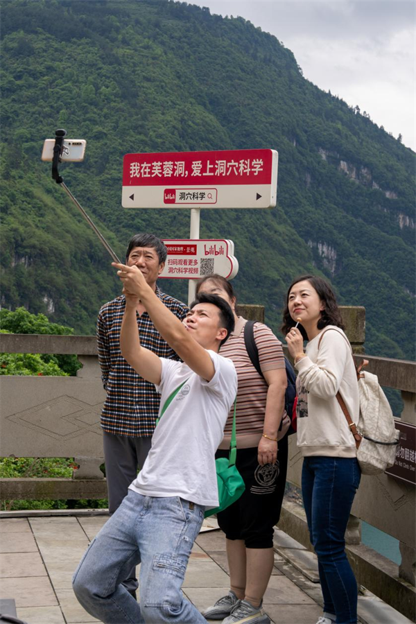 歡樂競技場等你來戰。天生三橋腦洞大開,上演“次元破壁”!黃金甲侍衛與變形金剛快閃對戰,快來打卡武隆“抽象”名場面!芙蓉洞長廊則變身“陀螺戰場”!選擇印有“武隆”“芙蓉洞”的專屬陀螺現場對撞,重拾童年歡樂;天生三橋電梯、仙女山小火車、芙蓉江纜車排隊處,熱門IP現身互動!石頭剪刀布、劃拳、你比我猜……讓等待變成歡樂時光!