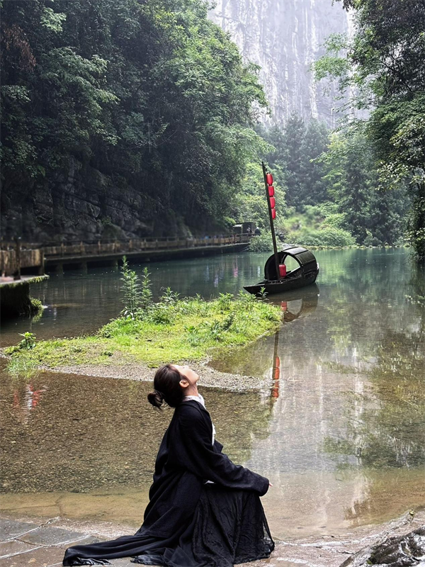 一秒穿越千年。踏入天生三橋龍泉洞,唐朝仕女乘烏篷船而來!只需完成打卡任務即可免費點曲,并在山水間感受“一曲唐音醉春風”的詩意。
