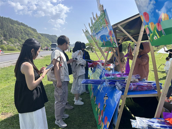 現場設置的“舊物換新鳶”環保驛站前排起長龍,游客用礦泉水瓶即可兌換限定款風箏,讓春日浪漫與綠色理念共同翱翔。游客還可通過關注、打卡武隆景區官方小紅書或抖音賬號,免費領取精美風箏,將春日的美好親手放飛。現場熱鬧非凡,歡聲笑語回蕩在草原上空。