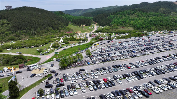 為應對車輛增多的情況,景區設置多個臨時停車場,提供充足車位,并通過合理規劃停車區域,盡管游客眾多,車流量激增,但車輛均有序進入停車場,整齊停放,井然有序,形成一道和諧美麗的風景線。