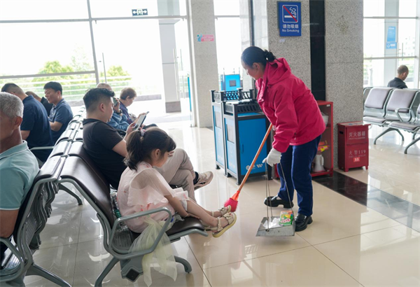 環衛工作者化身 “隱形超人”,手持掃帚穿梭在景區角角落落。他們彎腰清掃的每一個瞬間,都在為游客打造干凈舒適的游覽環境,讓美景更加賞心悅目。