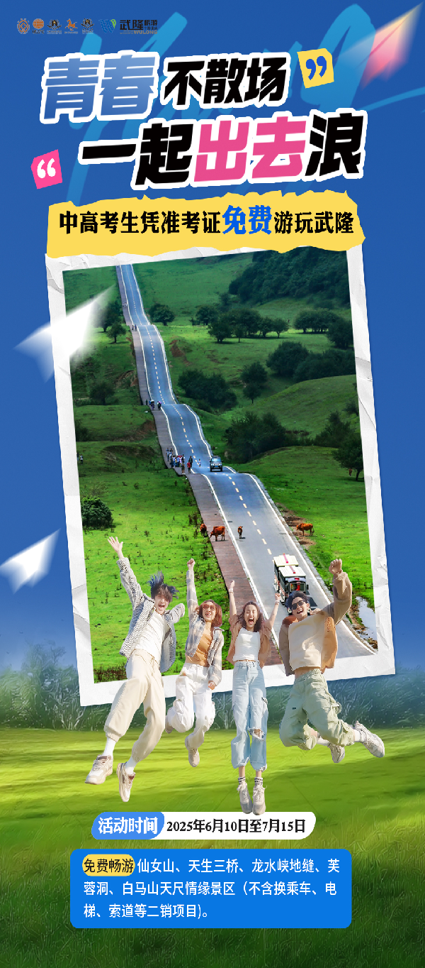 “人生錄取通知書”不該只有A4紙的厚度,還有片山水在等你“錄取”。武隆為中高考畢業生、大學生等人群量身定制的多款Pass卡福利進入倒計時!這可不是普通的景區優惠,是比志愿填報更該的“搶投檔”。當畢業旅行成為“青春必考題”,武隆給出標準答案!