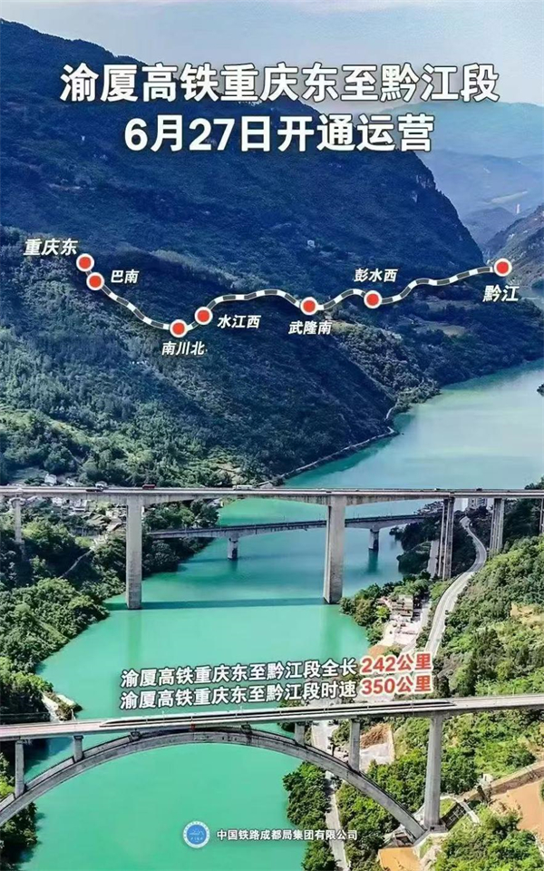 據中國國家鐵路集團有限公司消息,新建重慶至廈門高速鐵路(以下簡稱渝廈高鐵)重慶東至黔江段將于6月27日開通運營,重慶東至武隆南站30分鐘速達。從此,仙女山的清風、芙蓉洞的清涼……武隆喀斯特山水秘境,成為主城市民觸手可及的“后花園”!