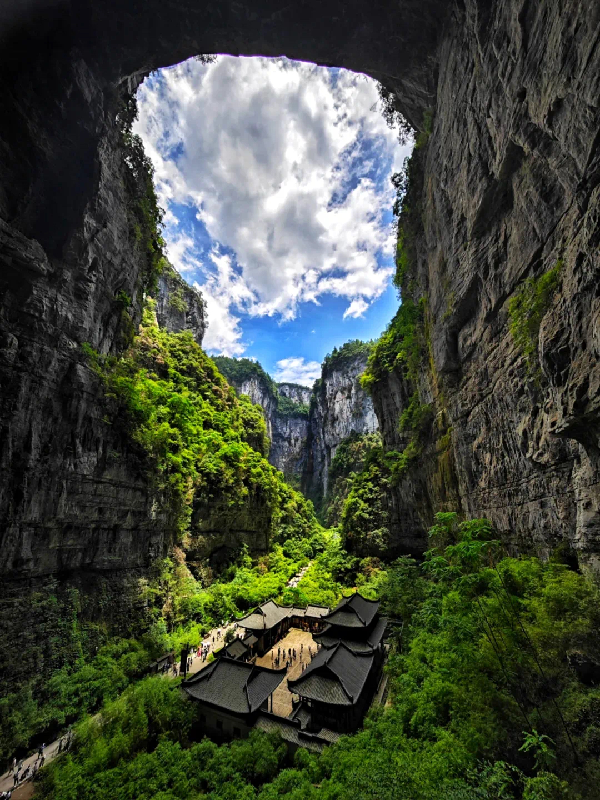 天生三橋,遠觀,山是一座橋;近看,橋是一座山。由天龍橋、青龍橋、黑龍橋組成,是世界規模最大、最高的串珠式天生橋群,以其獨特的喀斯特地貌和壯麗的自然風光被譽「地球上的仙境」。
