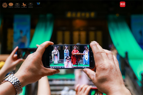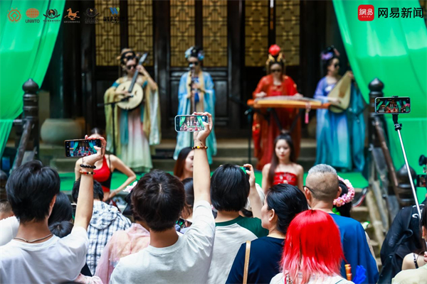 更有歡樂互動,音樂人與游客親密互動、合影拍照,有獎問答,全程沉浸在歡樂的仙樂歌舞中,游客都說,“這哪是仙女,明明是‘仙系蹦迪團’!”